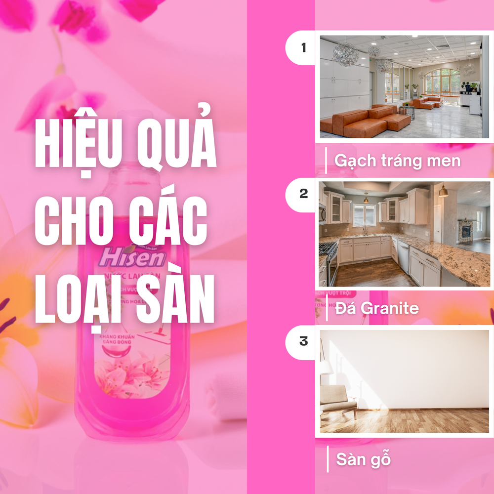 Nước lau sàn HISEN giúp loại bỏ bụi bẩn, vi khuẩn và mùi hôi khó chịu chỉ sau một lần lau, mang lại sàn nhà sạch bóng và hương thơm dễ chịu kéo dài nhiều giờ. Công thức dịu nhẹ, không gây trơn trượt, an toàn cho trẻ nhỏ và thú cưng. Phù hợp với mọi loại sàn như gạch men, gỗ, đá, nhựa,…